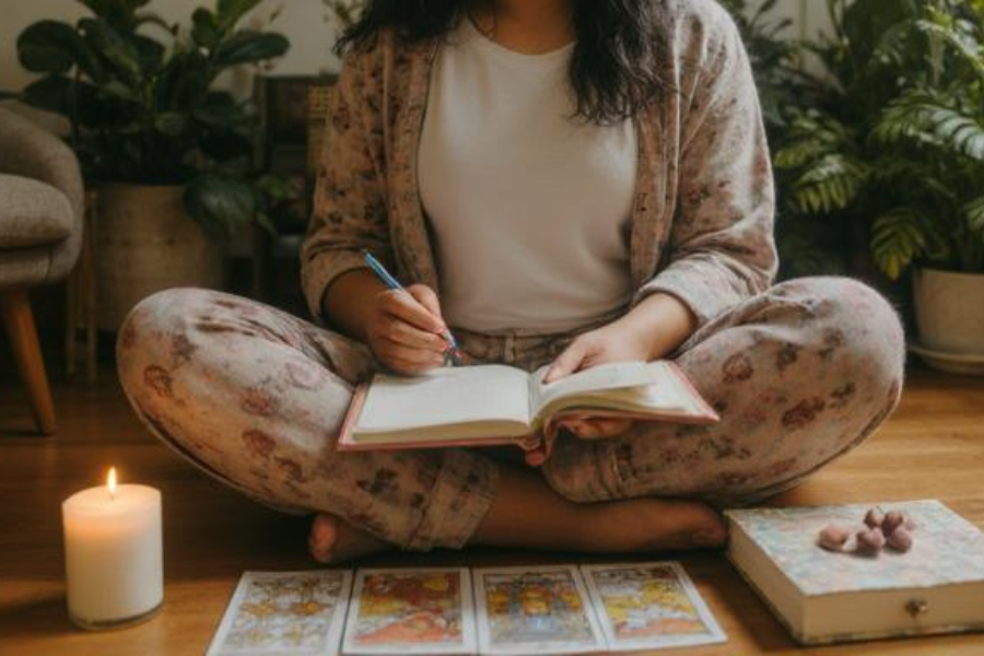 • Guided Tarot spreads and reflection prompts